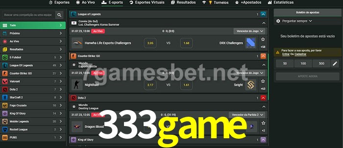 O 333game oferece uma grande seleção de opções de apostas em e-sports com probabilidades competitivas